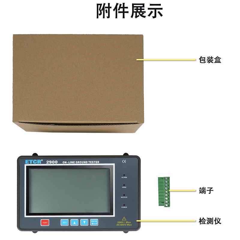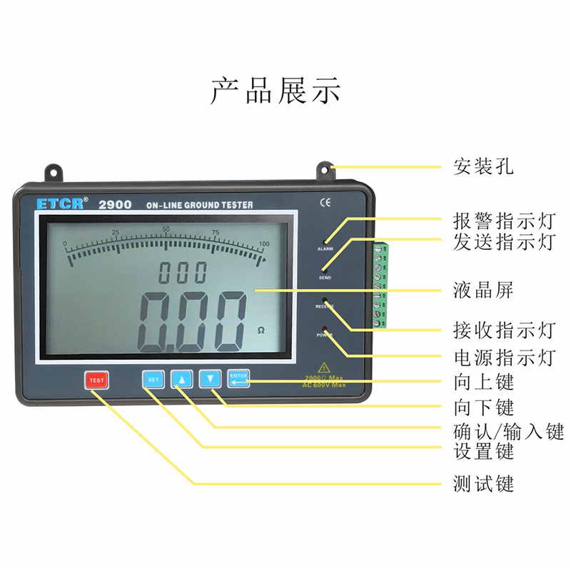 ETCR2900接地電阻在線測(cè)試儀(地樁式)0.01Ω~2000ΩAC 0V~600VRS485通訊可設(shè)置報(bào)警閾值