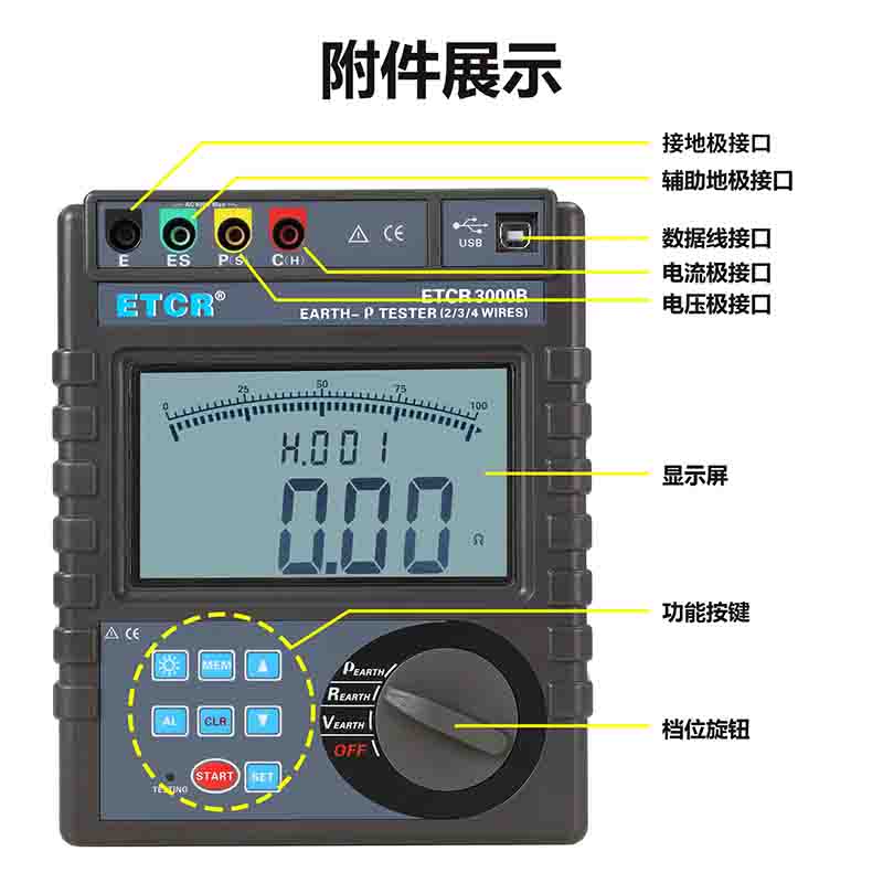 ETCR3000B接地電阻/土壤電阻率測(cè)試儀