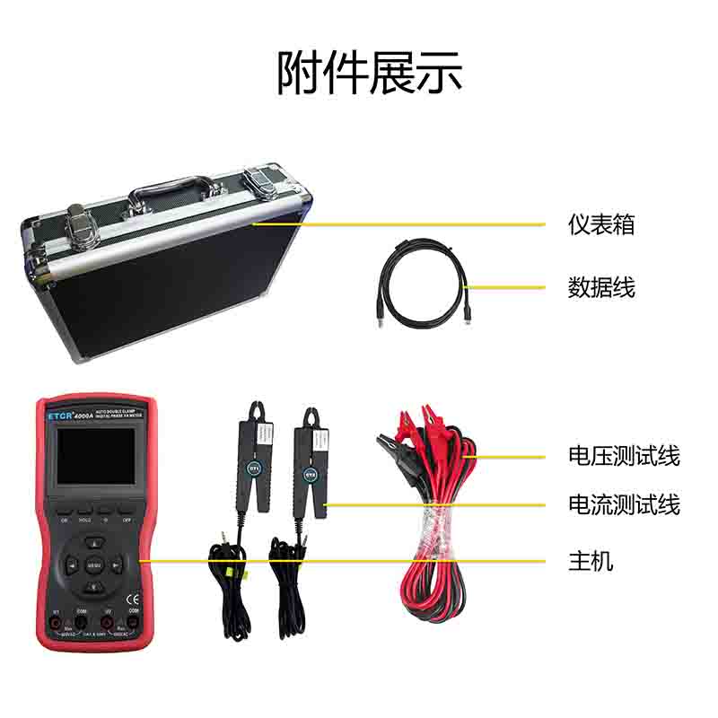 用于測(cè)量單相交流電相位、電流、電壓、漏電流、相序、頻率、有功功率、無功功率、視在功率、功率因數(shù)等電力參數(shù)
