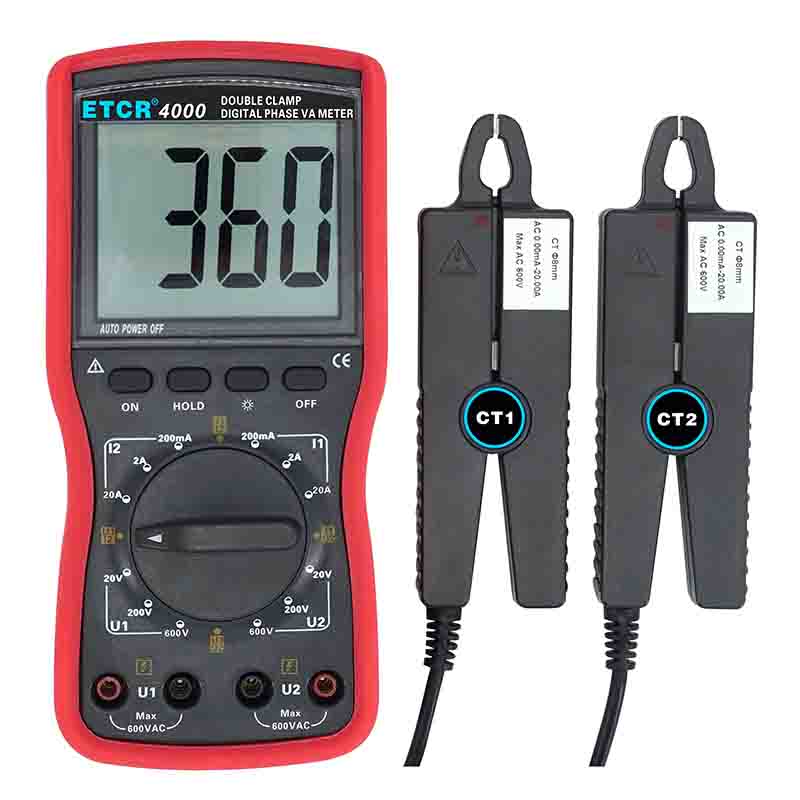 ETCR4000數(shù)字雙鉗相位伏安表Φ8mm0~360°0.00V~600V0.00A~20.0A--