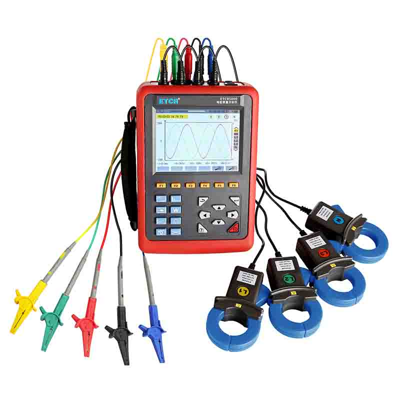ETCR5000電能質(zhì)量分析儀又稱電力質(zhì)量分析儀、電力參數(shù)測試儀、諧波分析儀,是一款專為現(xiàn)場測試三相電能參數(shù)的多功能、智能化綜合型測試儀器??赏瑫r測量4路電流(ABC三相及中性線電流),4路電壓(ABC三相電壓及中性線對地電壓)、電流電壓的峰值、一段時間內(nèi)的最大最小值、三相不平衡度、短時電壓閃變、變壓器K因數(shù)、有功功率、無功功率、視在功率、功率因數(shù)、位移功率因數(shù)、有功電能、無功電能、視在電能、諧波比、總諧波失真度等;顯示電流電壓的實時波形、相量圖、諧波比柱形圖;動態(tài)捕捉電壓電流瞬時變化,監(jiān)測啟動電流,監(jiān)測各電力參數(shù)并生成告警列表,長時間記錄測試數(shù)據(jù)并生成趨勢曲線圖等功能。適用于電力、石化、冶金、鐵路、工礦企業(yè)、科研院校、計量部門等。