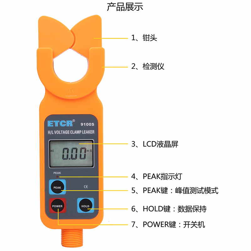 ETCR9000S便攜式高低壓鉗形漏電流表Φ48mmAC 0mA~1200A99組————