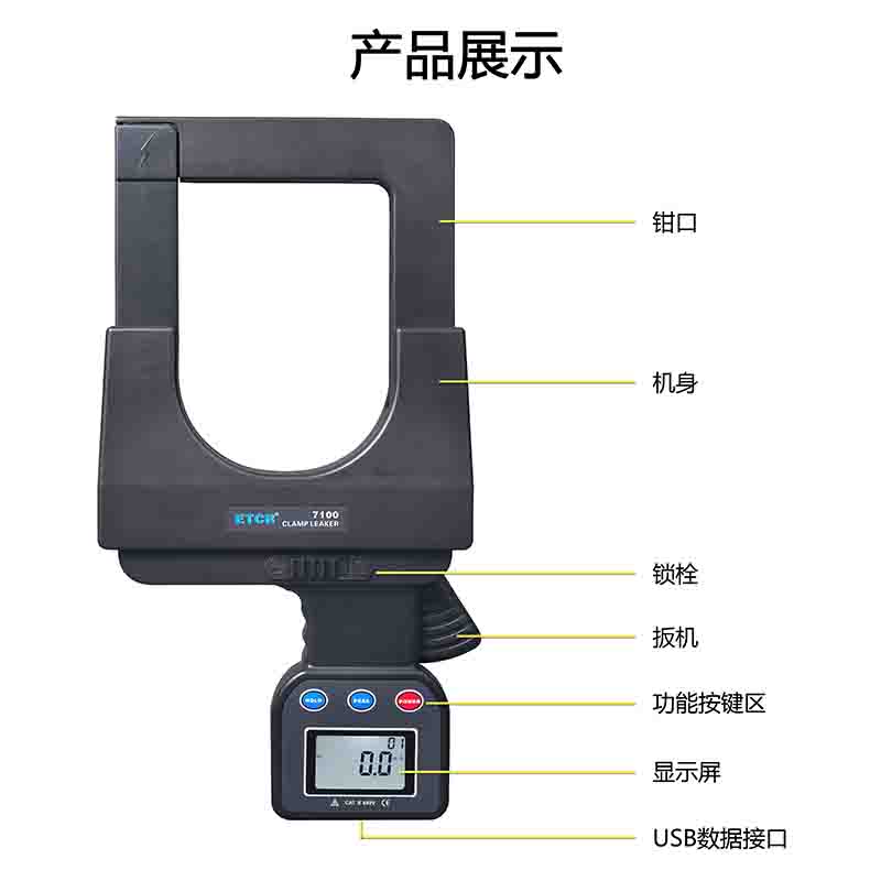 ETCR7100超大口徑鉗形漏電電流表又稱鉗形漏電流測試儀、超大鉗口鉗形電流表,用于交流漏電流、交流電流測量。鉗表傳感鐵芯采用坡膜合金及雙層蔽技術(shù),幾乎不受外界電磁場的影響,確保了常年無間斷測量的高精度、高穩(wěn)定性、高可靠性。超大口徑(108mm×148mm:可鉗φ108mm電纜或160mm×4mm扁鋼地線),特別適合于電纜漏電及變壓器接地扁鋼漏電檢測。廣泛適用于電力、通信、氣象、鐵路、油田、建筑、計(jì)量、科研教學(xué)單位、工礦企業(yè)等領(lǐng)域。