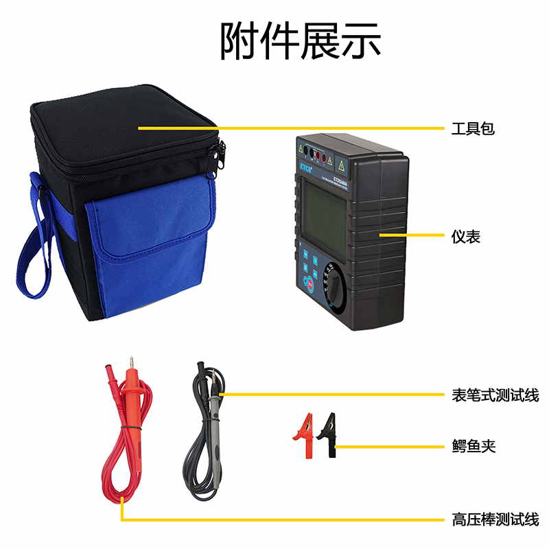 | ETCR3490B高壓絕緣電阻測試儀 | 500V,1000V,2500V,5000V,10000V | 0.2MΩ~4.00TΩ | 5mA MAX | AC 750V;DC 1000V |