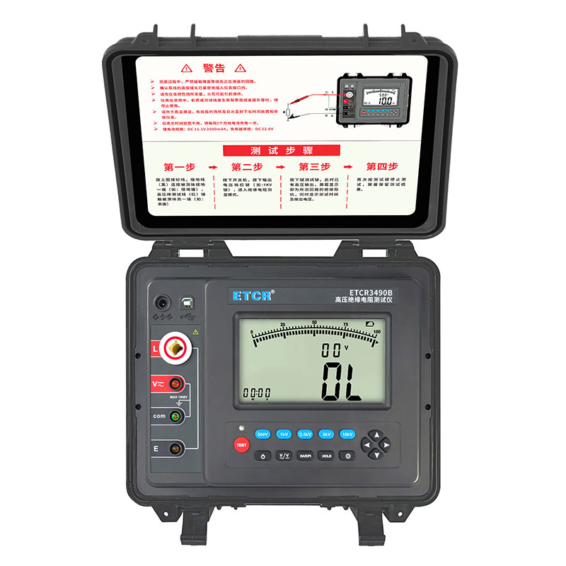 ETCR3490系列高壓絕緣電阻測(cè)試儀整機(jī)美觀,量程寬,精度高,分辨率高,操作便捷,攜帶方便,準(zhǔn)確可靠、性能穩(wěn)定,抗干擾能力強(qiáng)。而且具有防震、防塵、防潮結(jié)構(gòu),是電信、電力、氣象、機(jī)房、油田、機(jī)電安裝和維修以及利用電力作為工業(yè)動(dòng)力或能源的工業(yè)企業(yè)部門常用而必不可少的儀表。適用于測(cè)量各種絕緣材料的電阻值及變壓器、電機(jī)及電器設(shè)備等的絕緣電阻。