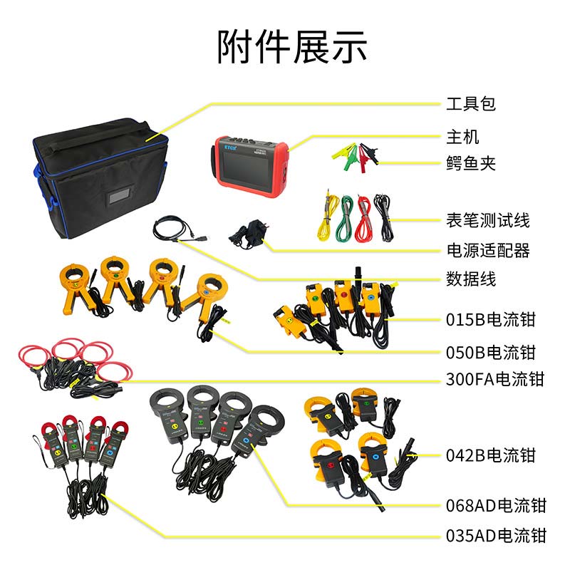 總質(zhì)量:約12kg(含包裝、整套電流鉗及附件)。