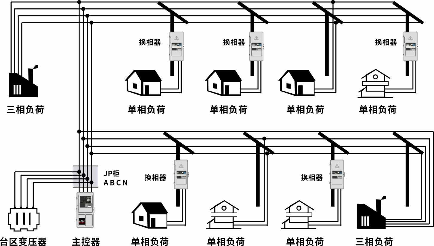 這是一種實時、智能的自動負(fù)荷調(diào)控系統(tǒng),對單相負(fù)荷進行有載換相調(diào)度,完美有效地解決低壓配網(wǎng)三相不平衡問題