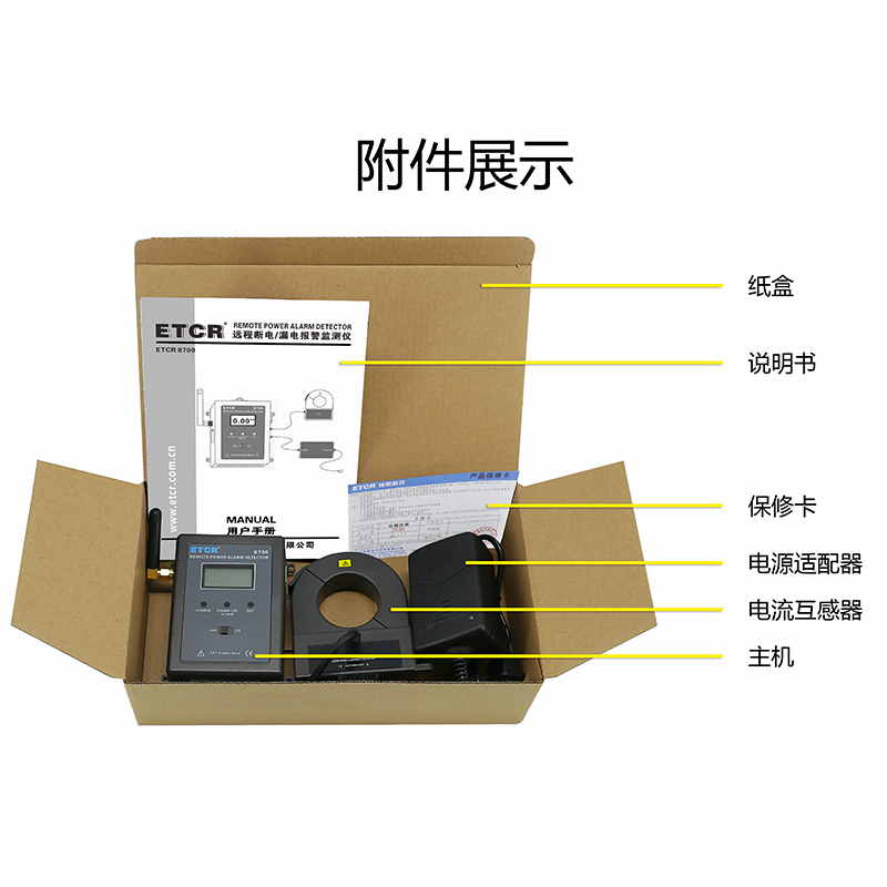 ETCR 8700遠(yuǎn)程斷電/漏電報(bào)警監(jiān)測(cè)儀又稱(chēng)在線斷電報(bào)警器,用于需要無(wú)人值守和遠(yuǎn)程在線報(bào)警監(jiān)測(cè)斷電、恢復(fù)供電、漏電的工控現(xiàn)場(chǎng),屬工業(yè)級(jí)4G報(bào)警監(jiān)控儀,也可以當(dāng)防盜報(bào)警器使用。監(jiān)測(cè)儀由電腦、電流傳感器、GPRS模塊、上位機(jī)軟件、電源適配器等組成。內(nèi)置GPRS模塊,用戶(hù)只需通過(guò)自己電腦服務(wù)器設(shè)置幾個(gè)簡(jiǎn)單參數(shù),就可以隨時(shí)監(jiān)測(cè)遠(yuǎn)程設(shè)備是否斷電、是否恢復(fù)供電、是否有漏電等報(bào)警信息;也可以通過(guò)輸入擴(kuò)展口接入溫度、濕度、人體紅外感應(yīng)器等傳感器;還可以通過(guò)輸出擴(kuò)展口控制遠(yuǎn)程的繼電器等其他設(shè)備。廣泛適用于安防、電力設(shè)備、銀行、電信、工廠、鐵路、機(jī)房、不間斷電源、生物制藥、倉(cāng)庫(kù)、藥房、重要機(jī)械設(shè)備、24小時(shí)運(yùn)轉(zhuǎn)的生產(chǎn)線等各種需要斷電報(bào)警、漏電監(jiān)測(cè)報(bào)警、遠(yuǎn)程控制啟停等場(chǎng)所。
