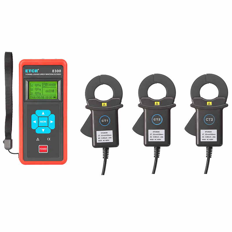 | ETCR8300三路鉗形漏電流記錄儀 | Φ30mm | AC 0.00mA~20A | 7天 | 1秒-99分鐘 | 20萬組 | 鋰電池 | 有 |