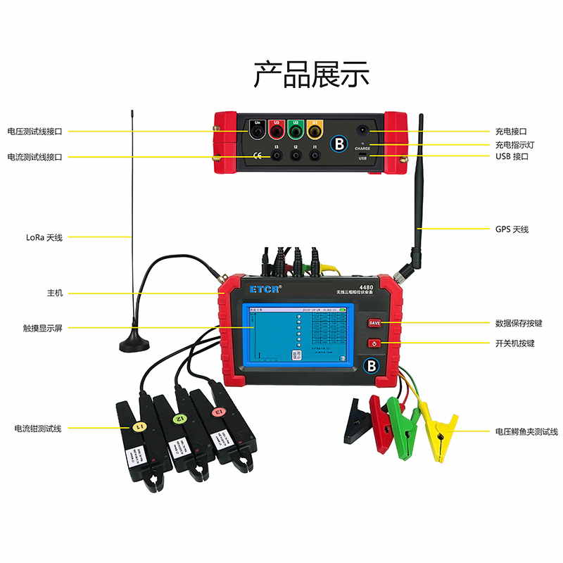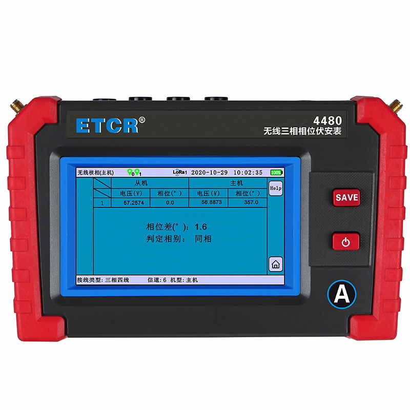 ETCR4480無線三相相位伏安表采用5寸觸摸彩屏、中文界面、功能直達(dá)、自動測量、操作簡易快捷,準(zhǔn)確可靠,儀表采用大容量可充電鋰電池、具有數(shù)據(jù)存儲、數(shù)據(jù)查閱、自動關(guān)機(jī)、USB接口數(shù)據(jù)上傳導(dǎo)出等功能。儀表具有支持安卓系統(tǒng)的藍(lán)牙通訊,可在手機(jī)進(jìn)行測試或查看測試記錄。本儀器采用專用計量芯片,具備非常高的電參數(shù)測量精度,能夠?qū)崟r顯示待測參數(shù)的變化,同時具備一鍵保存數(shù)據(jù)的功能。產(chǎn)品操作簡單、使用方便、測量快速、穩(wěn)定、結(jié)果可靠,是電力系統(tǒng)電能計量和繼電保護(hù)專業(yè),進(jìn)行二次回路現(xiàn)場檢測的新一代儀表,也廣泛適用于電氣設(shè)備制造、石油化工、鋼鐵冶金、鐵路電氣化、科研教學(xué)等部門。