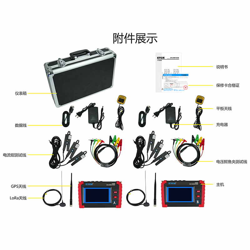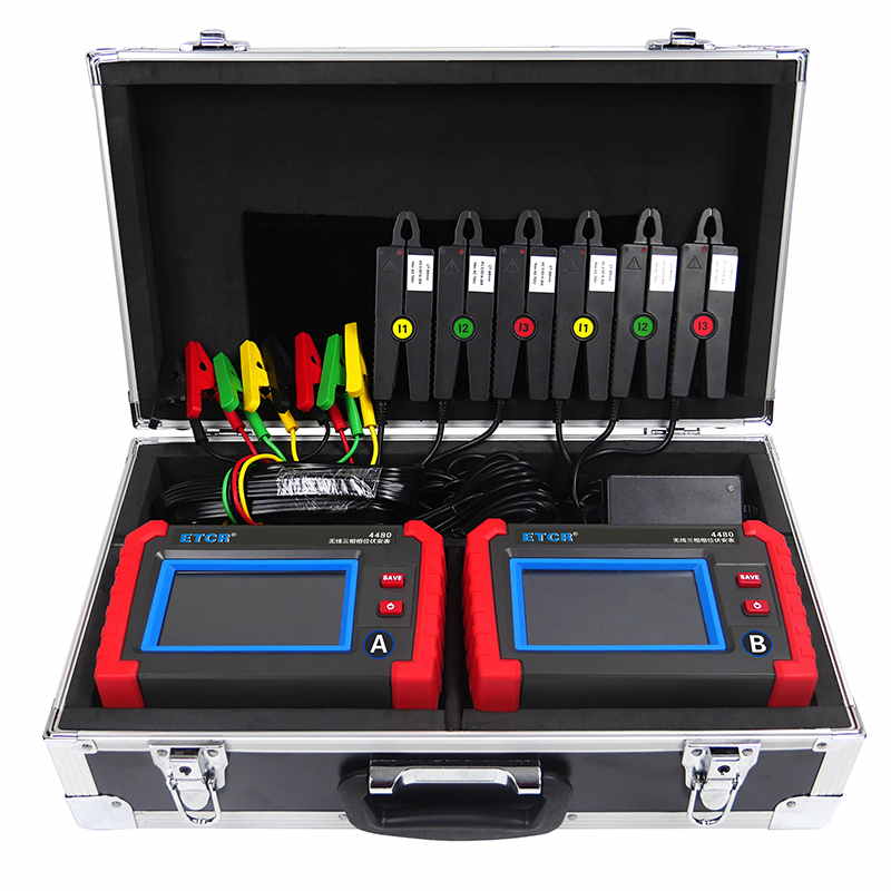 ETCR4480無線三相相位伏安表又稱三相電力參數(shù)測試儀、CT負(fù)荷測試儀、PT負(fù)荷測試儀,用于變電站內(nèi)不同位置的三相電力參數(shù)測量、PT無線核相、PT負(fù)荷測試、CT負(fù)荷測試、三相不平衡度測試、諧波分析等。儀表由2臺手持終端、6個電流鉗、2組電壓測試線等組成,2臺手持終端具有無線通訊及GPS通訊,可互設(shè)為主機(jī)或從機(jī),實現(xiàn)同步測量變電站內(nèi)不同位置之間電流、電壓、相位等參數(shù)。