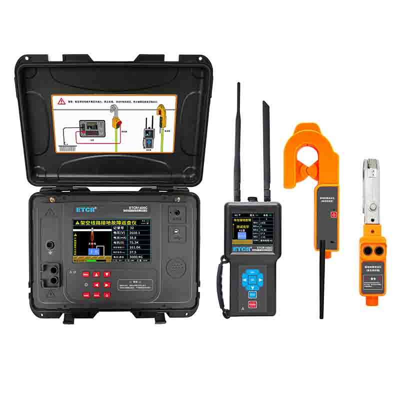 ETCR1400C架空線路接地故障巡查儀,可進(jìn)行多條線路的接地故障定位。在架空線路停運后,由高壓發(fā)射端向線路施加低頻高壓信號,電流檢測鉗檢測電纜線的信號,通過主機(jī)分析脈沖電流及阻抗,判斷有無接地故障,在接收機(jī)液晶屏顯示及語音播報檢測結(jié)果。